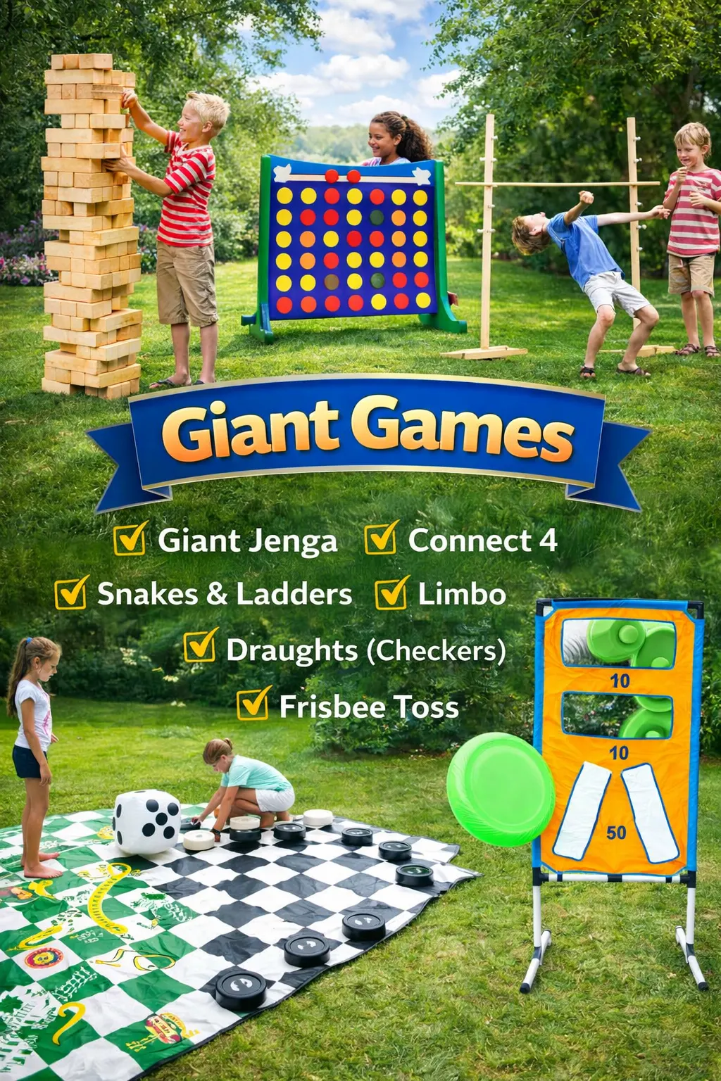 A brilliant entertainment option with our giant games rental. These oversized classics are perfect for outdoor events and are guaranteed to keep both kids and adults entertained.