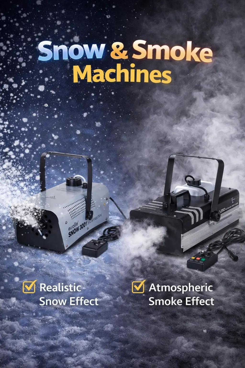 Add atmosphere and excitement to your event with our smoke machine and snow machine hire. Perfect for themed nights, seasonal events, and special moments.