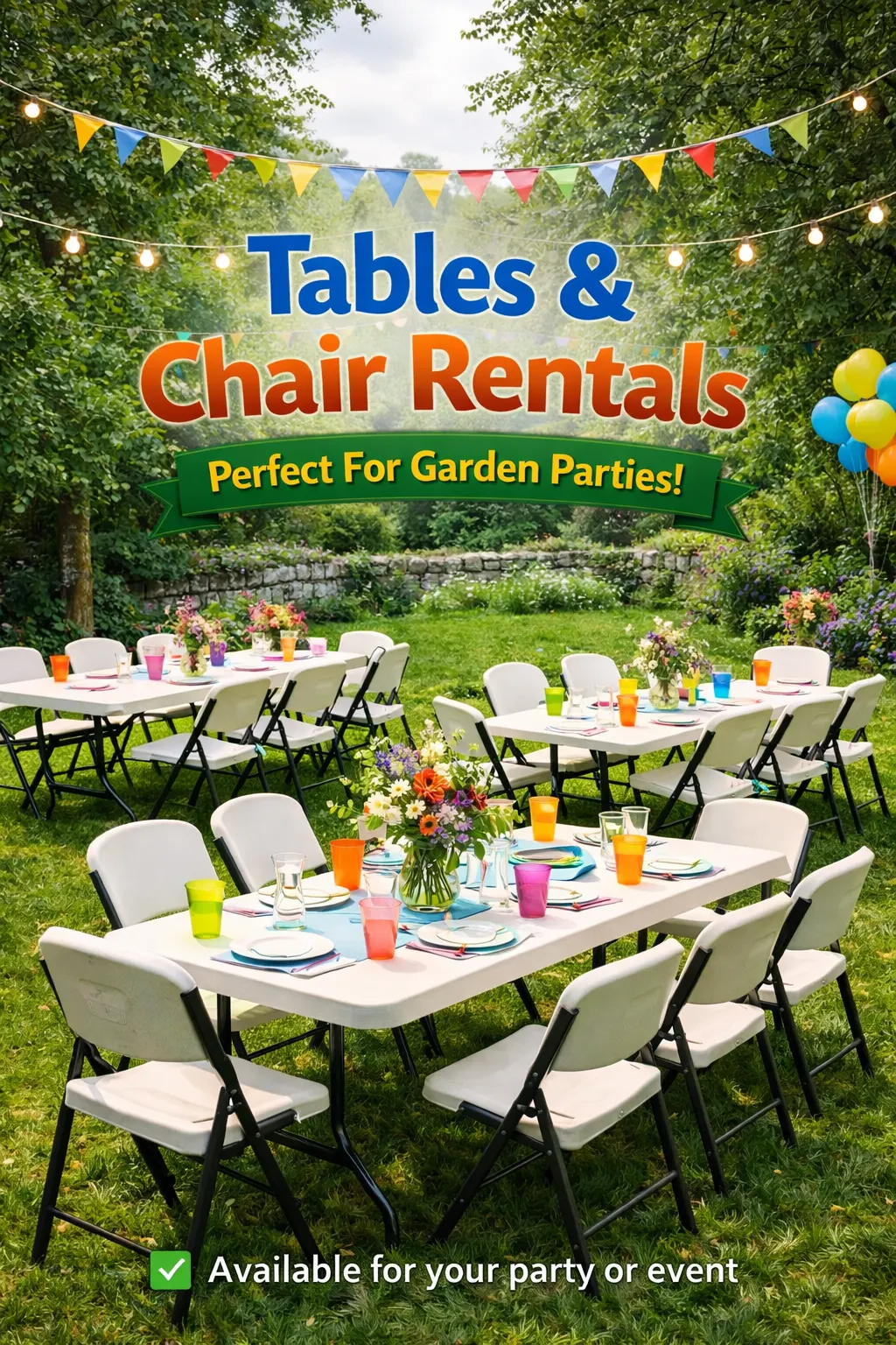 Practical and affordable table and chair rentals for home and garden events. No need to buy, store, or struggle for space โ simply rent what you need and return it after.