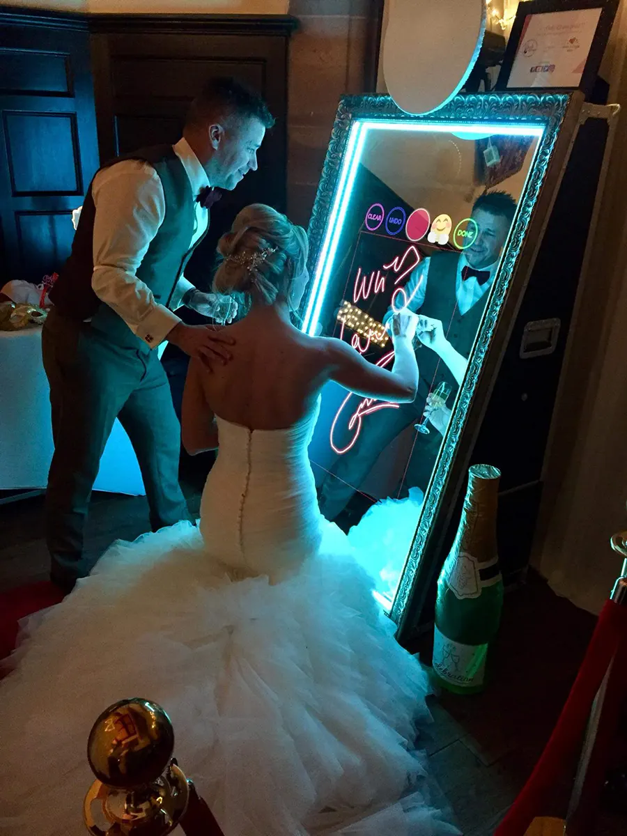 A magic mirror photo booth is a full-length interactive mirror that combines photography, animations and instant printing. Itβs often called a selfie mirror or mirror hire and is one of the most popular photo booth options for modern events.